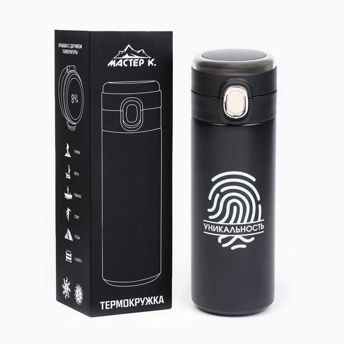 Термокружка, 420 мл, Simple "Уникальность", сохраняет тепло 8 ч, термометр