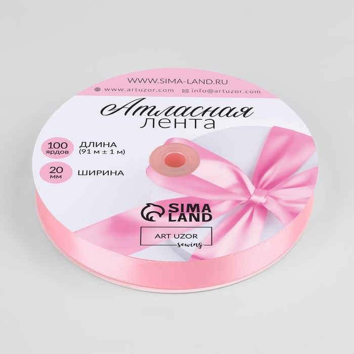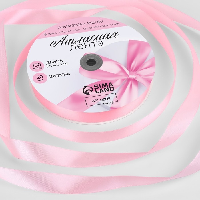 Лента атласная, 20 мм × 91 ± 1 м, цвет розовый №04