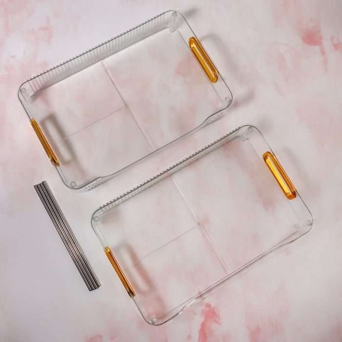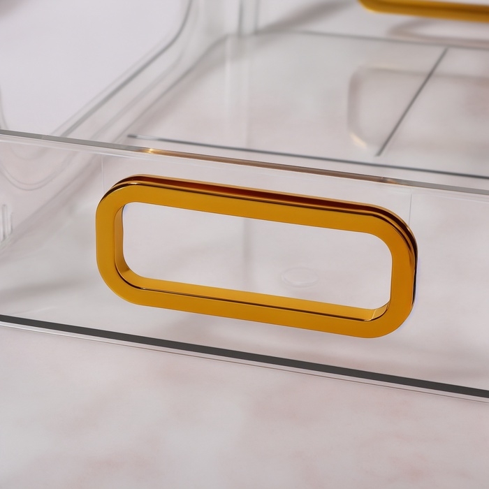 Органайзер для хранения, с ручками, 2 секции, 31 × 20 × 29 см, цвет прозрачный/золотой