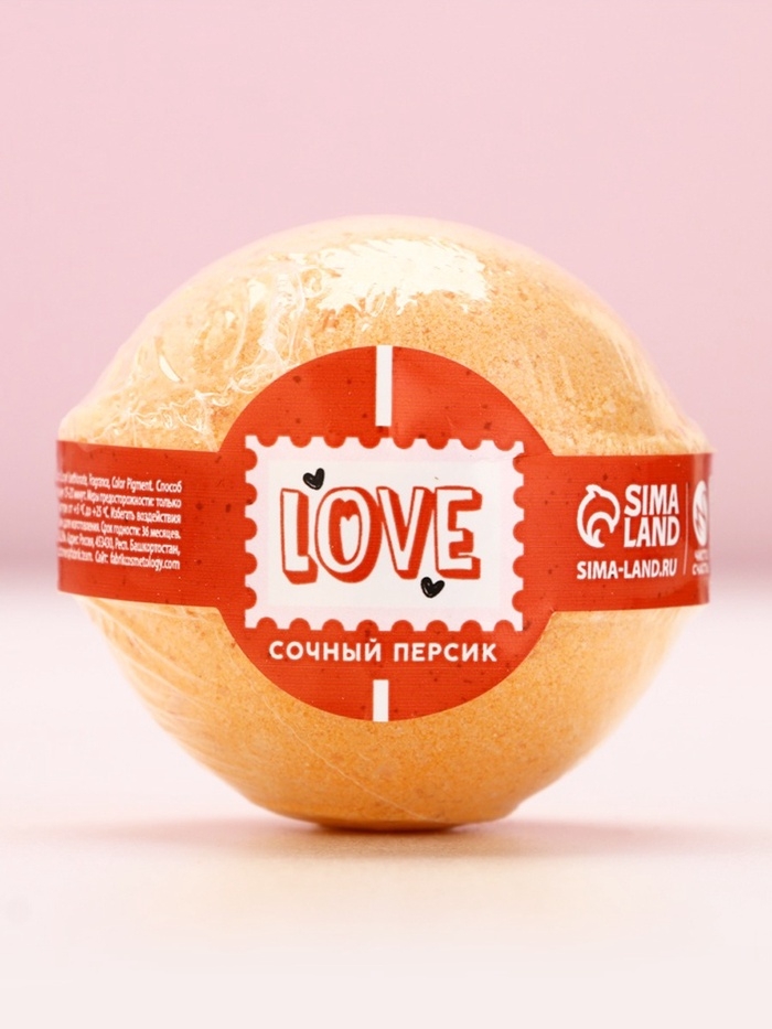 Бомбочка для ванны Love, 130 г, аромат сочного персика, ЧИСТОЕ СЧАСТЬЕ