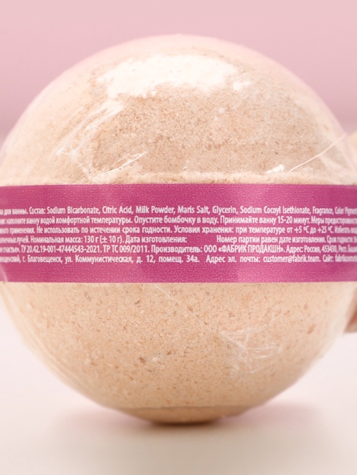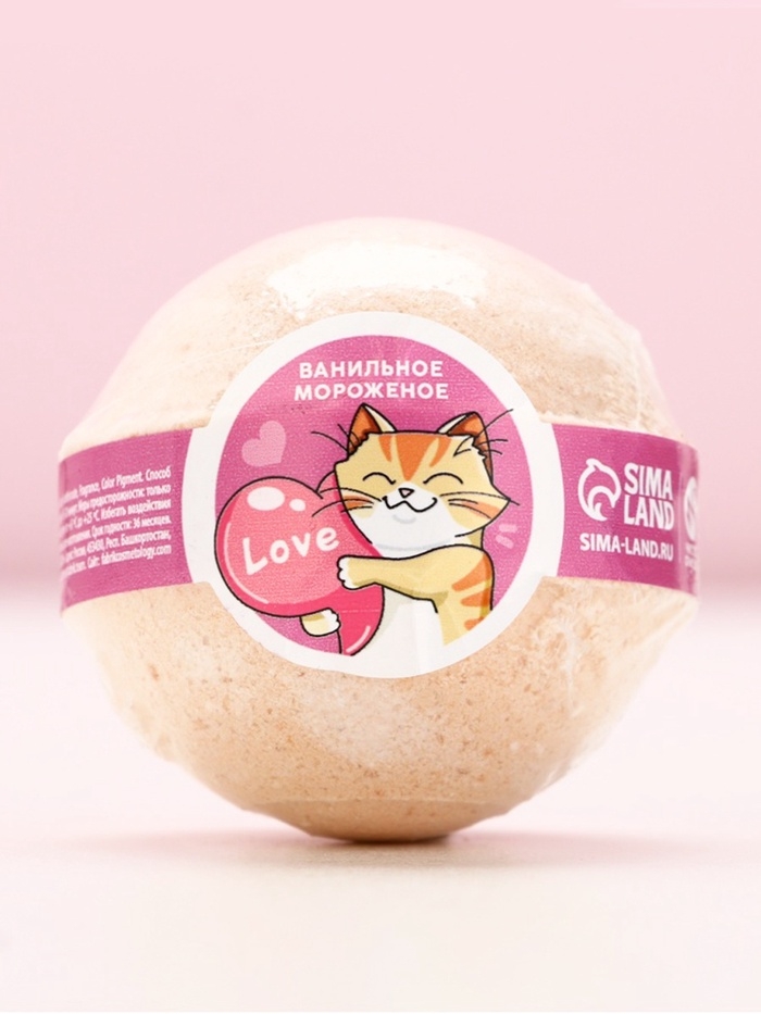 Бомбочка для ванны Love, 130 гр, аромат ванильного мороженого, ЧИСТОЕ СЧАСТЬЕ