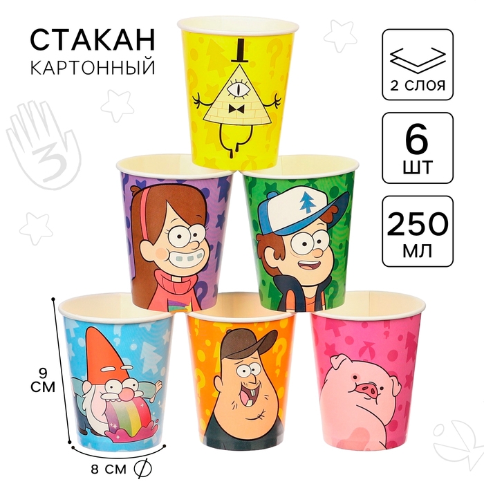 Набор стаканов одноразовых «С Днем Рождения!», 250 мл, 6 штук, Гравити Фолз