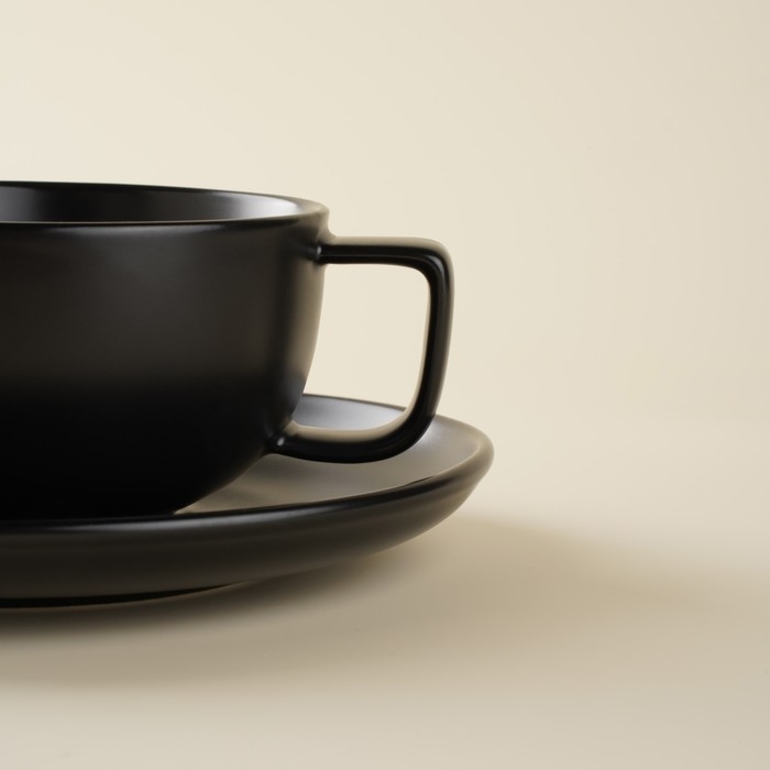 Чайная пара фарфоровая SL Home «Дарк», 2 предмета: чашка 300 мл, блюдце d=16,5 см, цвет чёрный