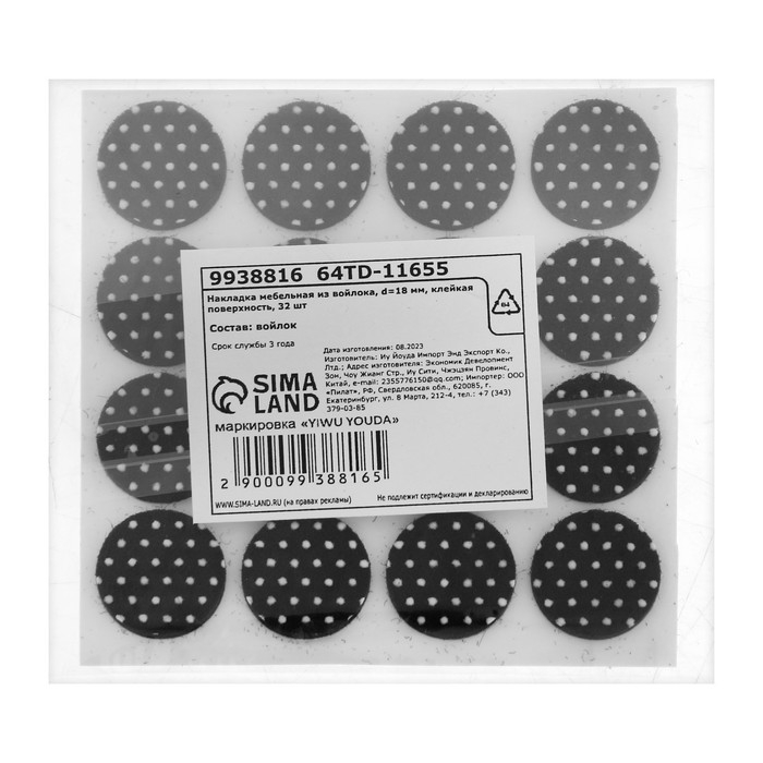 Накладка мебельная из войлока, d=18 мм, клейкая поверхность, 32 шт