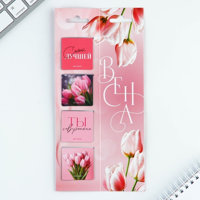 Магнитные закладки 4 шт в открытке «С 8 Марта»
