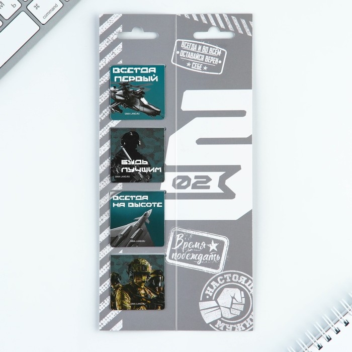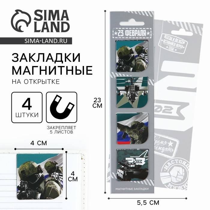 Магнитные закладки для книг, 4 шт. в открытке «С 23 февраля»