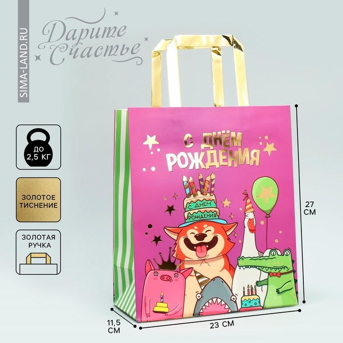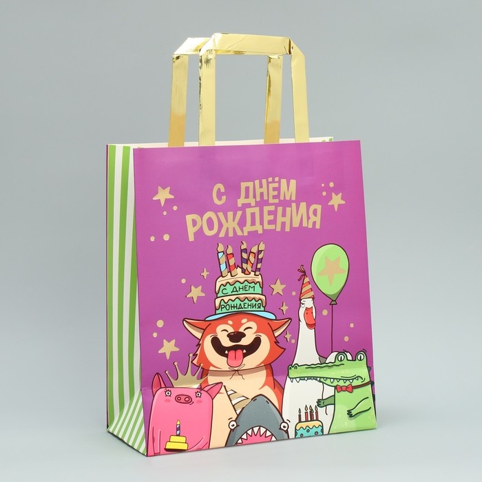 Пакет подарочный, упаковка, «С Днём рождения!», ML 23 х 27 х 11.5 см