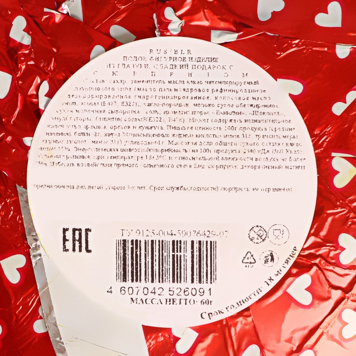 Кондитерское изделие "Сердце" с сюрпризом, 60 г