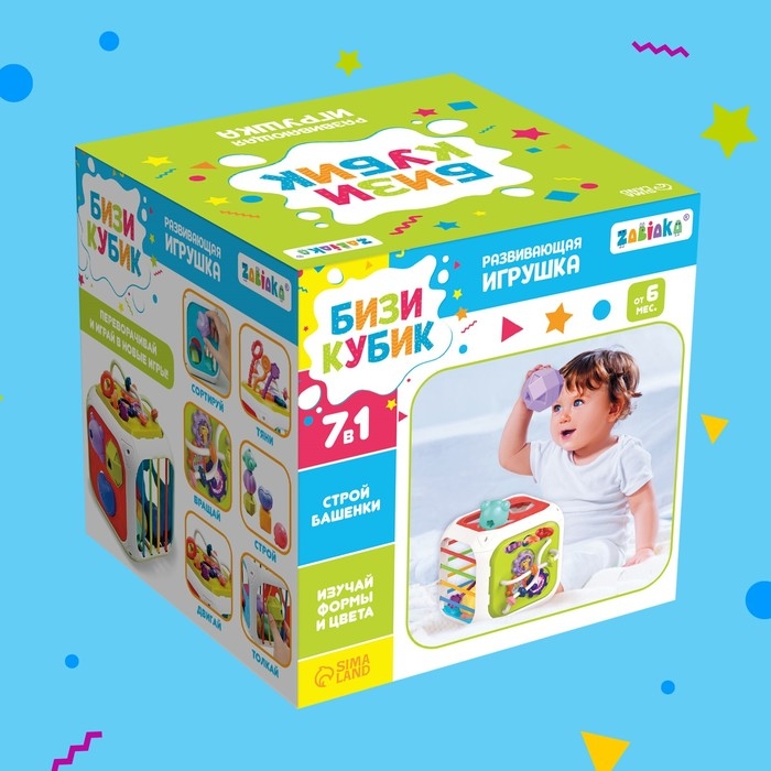 «Бизикубик» подойдёт для малышей от 6 месяцев. Яркая развивающая игрушка 7 в 1 понравится малышу и надолго увлечёт его, а вы спокойно сможете заниматься важными делами.