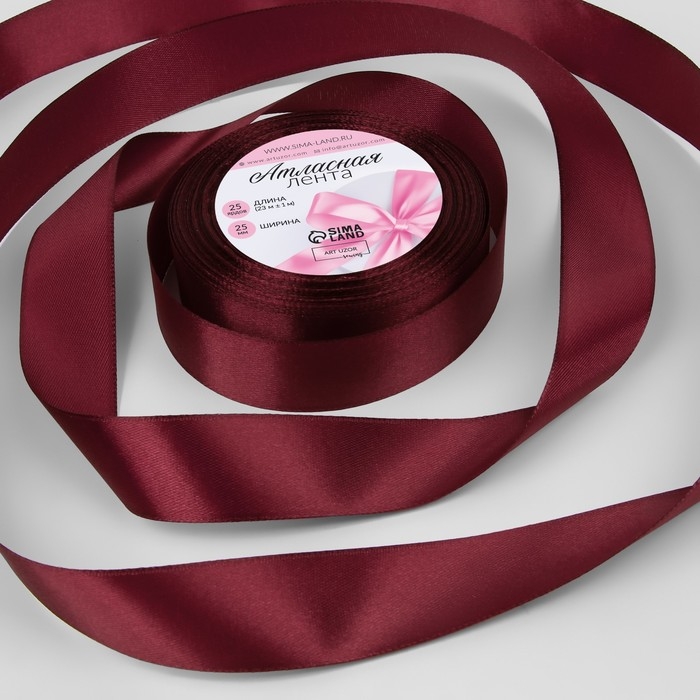 Лента атласная, 25 мм × 23 ± 1 м, цвет спелая вишня