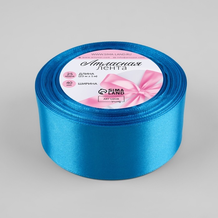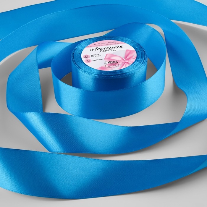 Лента атласная, 40 мм × 23 ± 1 м, цвет лазурный