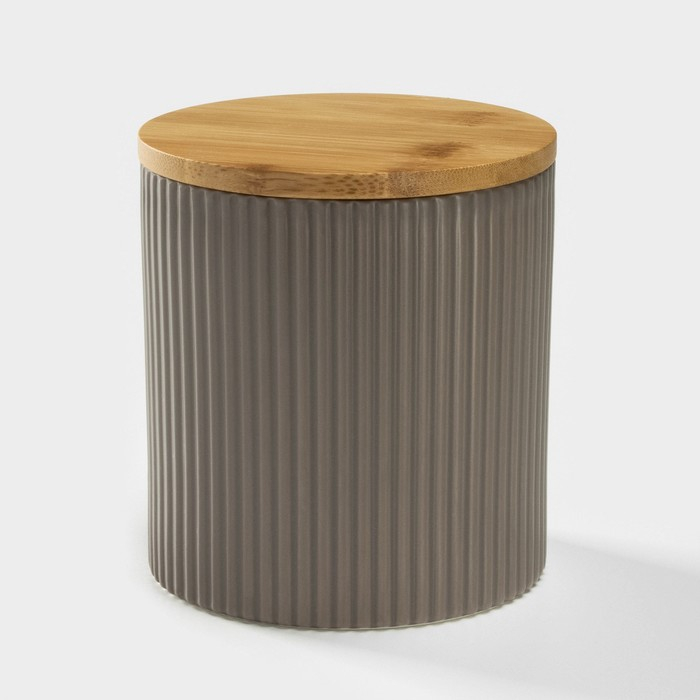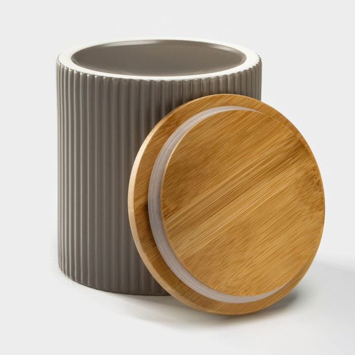 Банка для хранения сыпучих продуктов «Дымка», 1,1 л, 12×13 см, с бамбуковой крышкой, керамическая, цвет бежевый