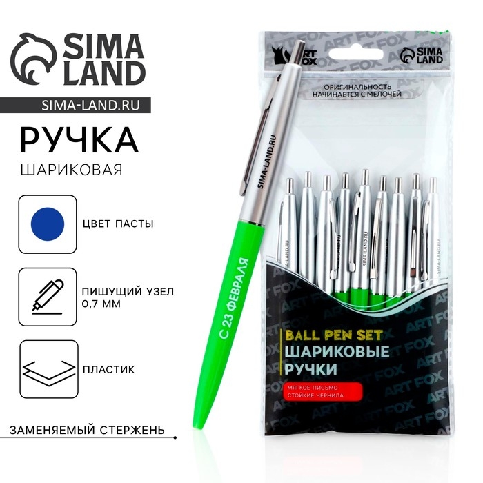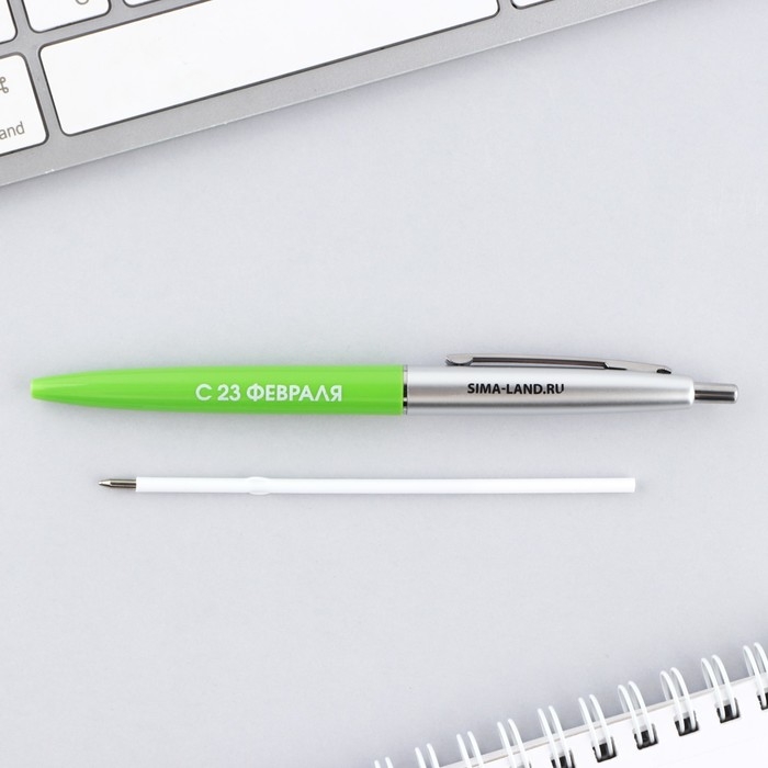 Ручка шариковая синяя паста автоматическая 0.7 мм «С 23 февраля» пластик
