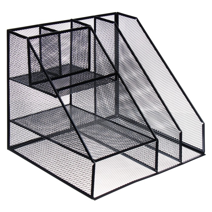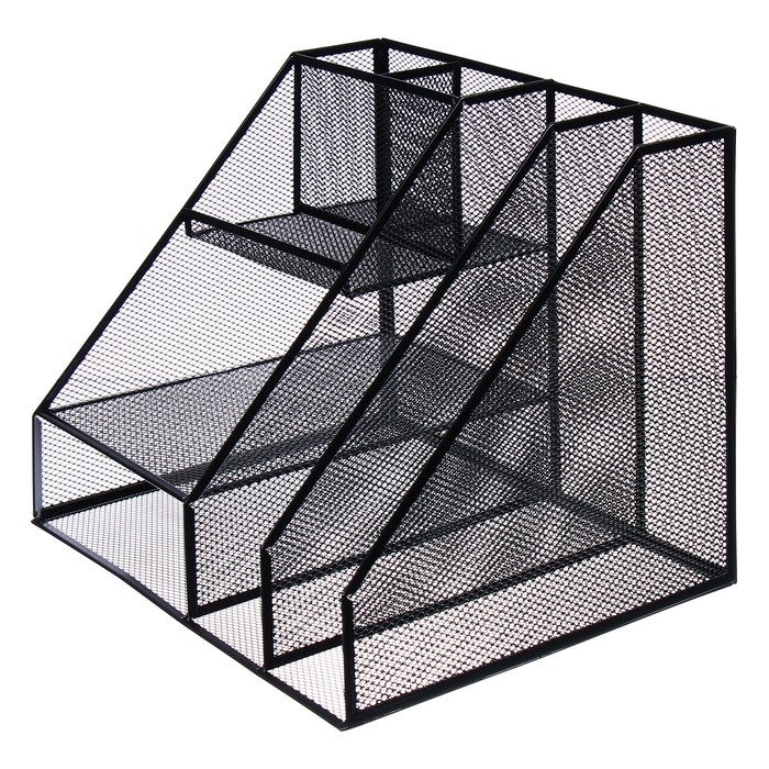 Подставка для канцелярских принадлежностей, 7 отделений, сетка, металл, чёрная