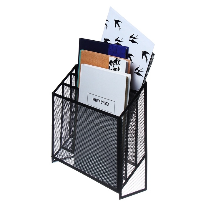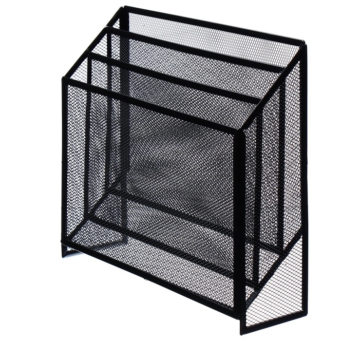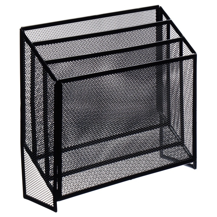 Лоток вертикальный, настольный, 3 отделения, сетка, металл, черный