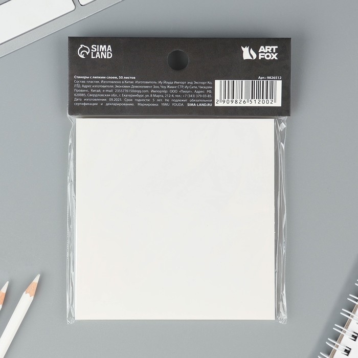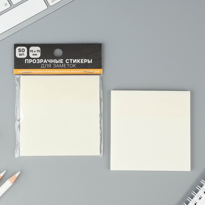 Прозрачные стикеры с липким слоем 75х75мм, 50 листов ArtFox