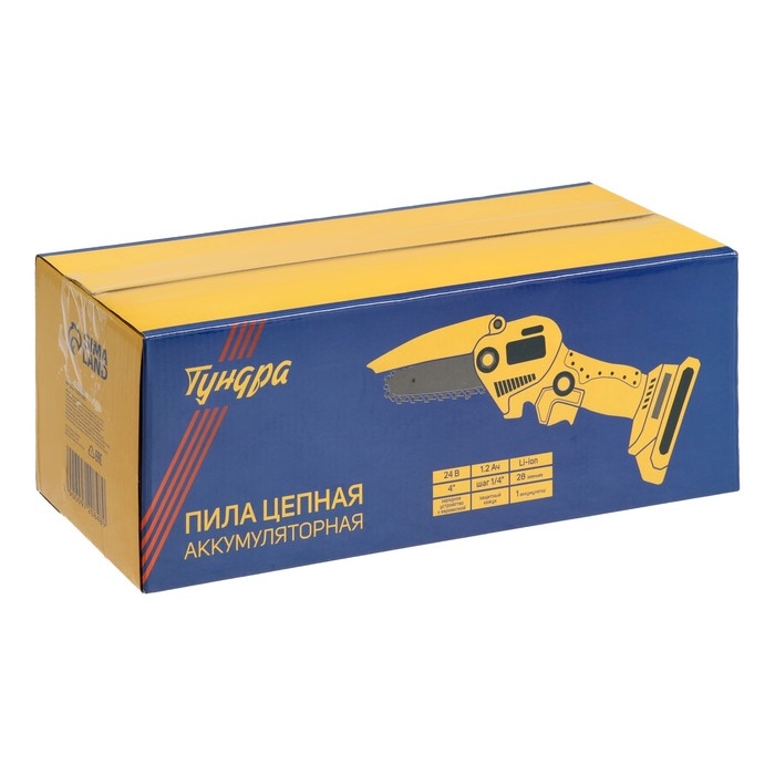 Пила цепная аккумуляторная ТУНДРА, 24 В, 1.2 Ач, Li-ion, 4", шаг 1/4", 28 звеньев