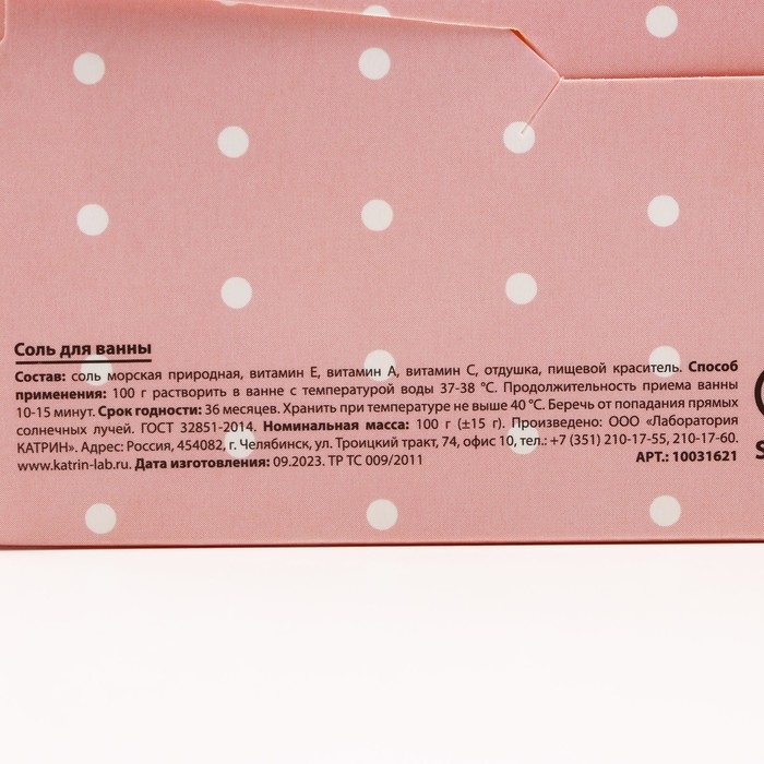 Соль для ванны Love, 100 г, аромат клубники, ЧИСТОЕ СЧАСТЬЕ