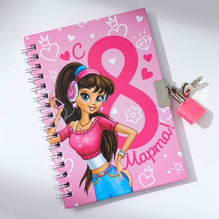 Блокнот на замочке А6, 50 л. «С 8 Марта»