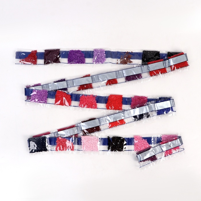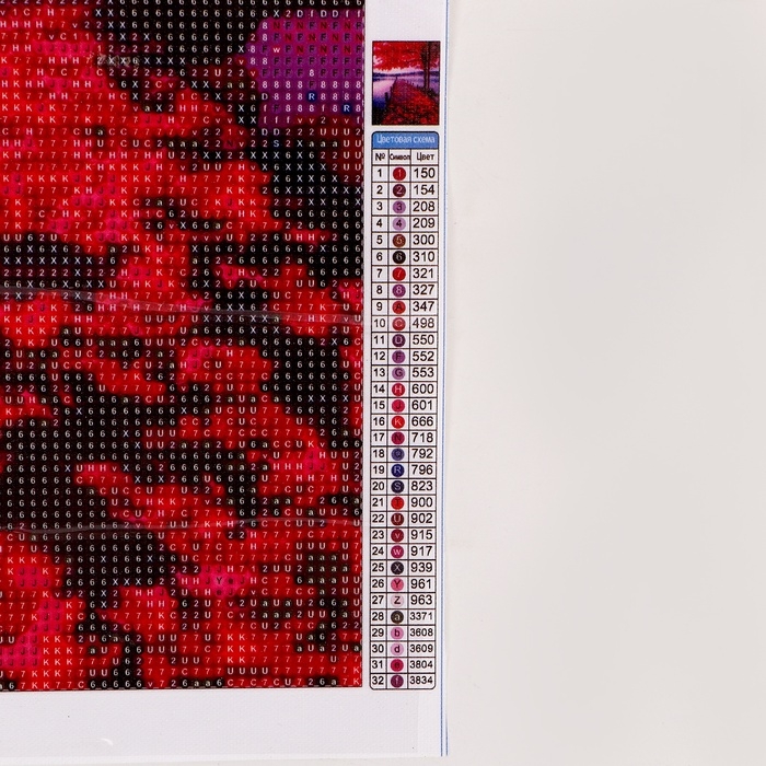 Вам предстоит разложить кристаллики карандашом по пронумерованной схеме. Холст с клеевым покрытием будет надёжно удерживать стразы.