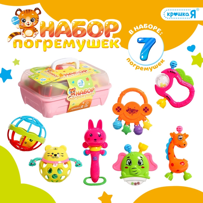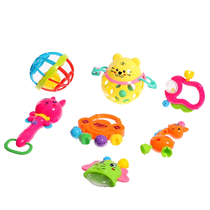 Набор погремушек с прорезывателями, 7 штук в наборе, в контейнере