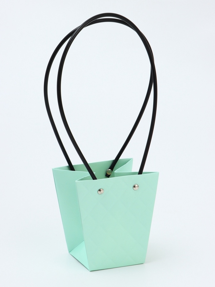 Сумка для цветов тиснение мята влагостойкая, 12x12-8x8-12.5 см