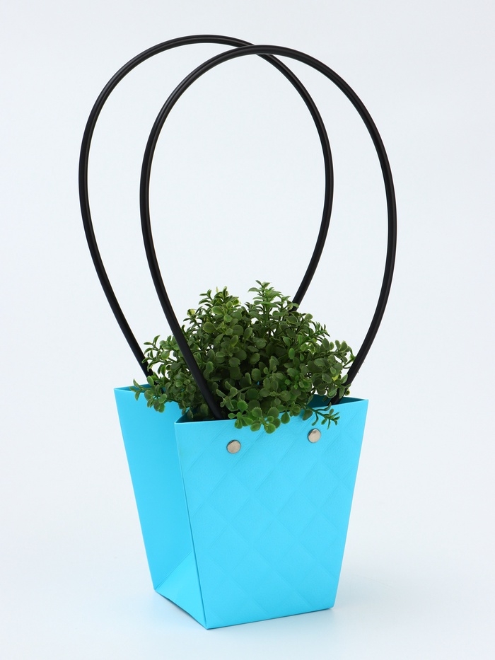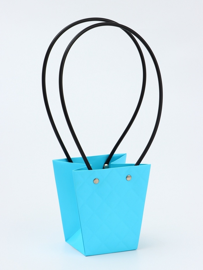 Сумка для цветов тиснение голубой влагостойкая, 12x12-8x8-12.5 см