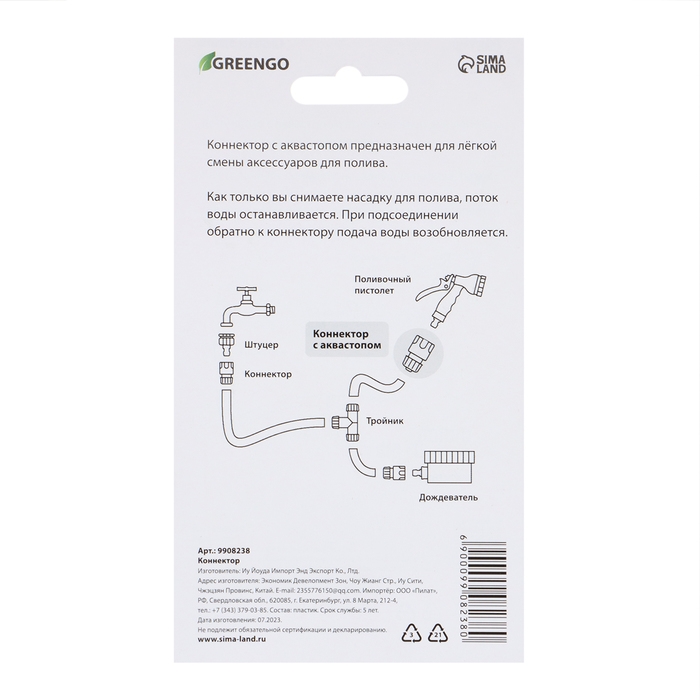 Коннектор с аквастопом, 5/8" (16 мм), быстросъёмное соединение, рр-пластик, Greengo
