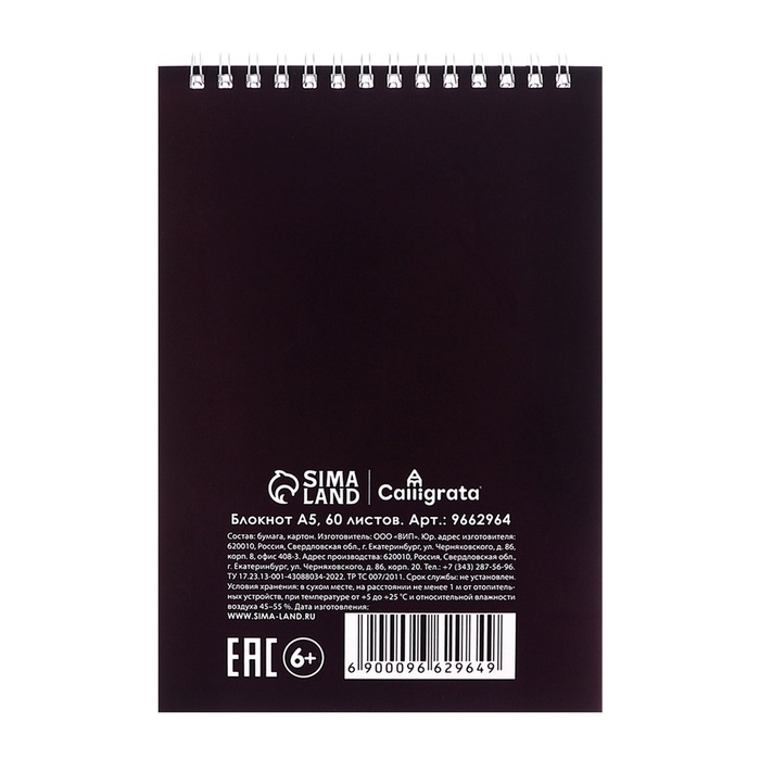 Блокнот А5, 60 листов в клетку, на гребне "Соня", обложка мелованный картон, блок 60г/м2