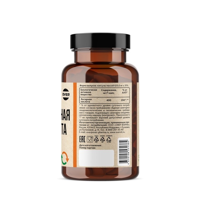 Янтарная кислота, 60 капсул по 620 мг