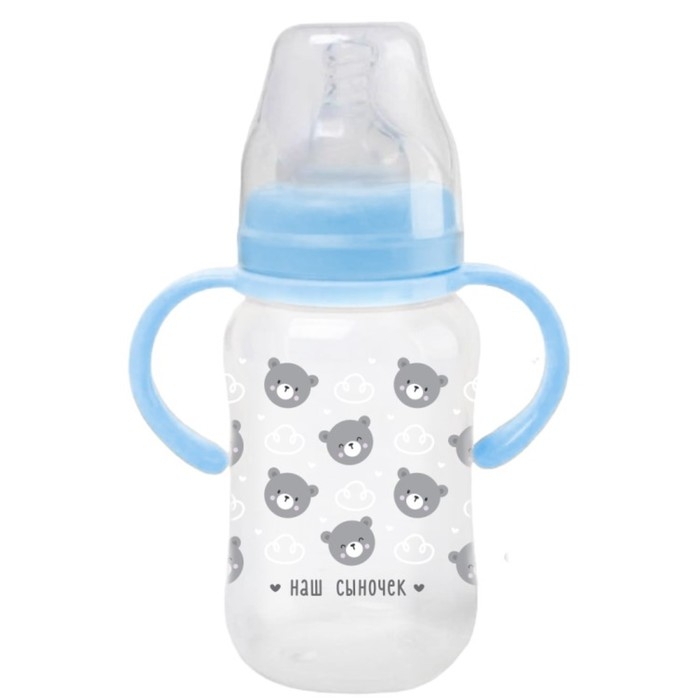 Бутылочка для кормления M&B «Наш сыночек», широкое горло, средний поток, от 3 мес., 270 мл.