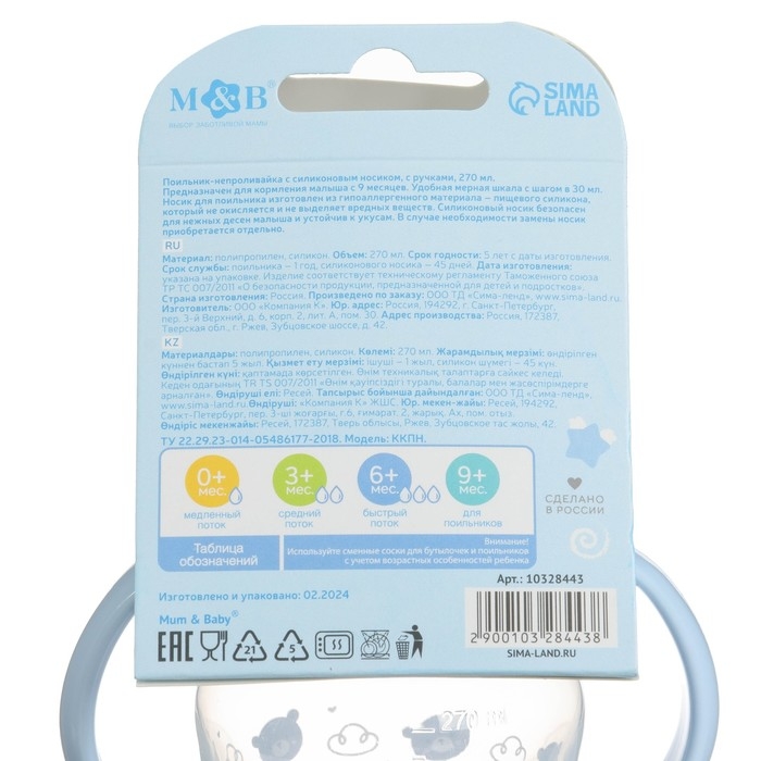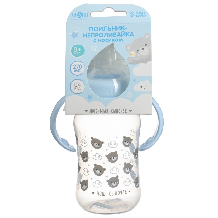 Поильник-непроливайка M&B «Наш сыночек», мягкий носик, от 9 мес., 270 мл.