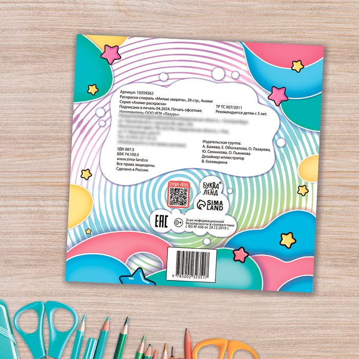 Раскраска-спираль «Милые зверята», 20 стр., Аниме