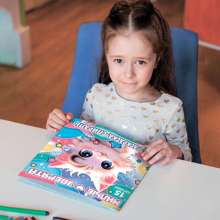 - 20 страниц — 15 картинок с изображениями забавных зверушек.