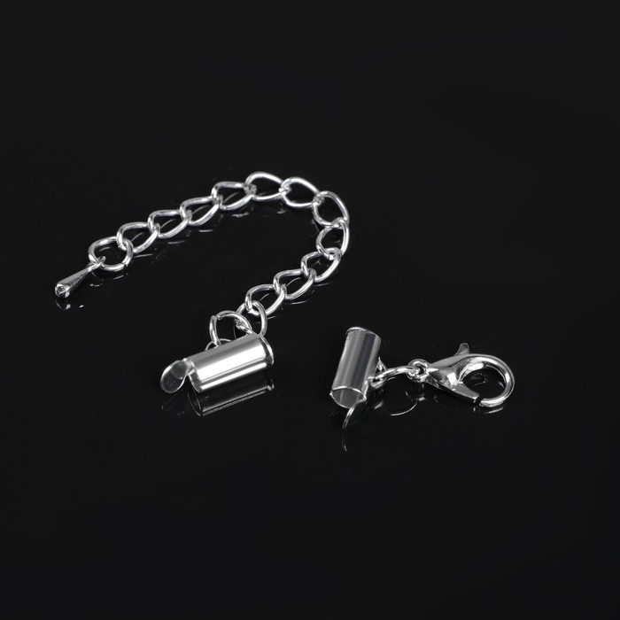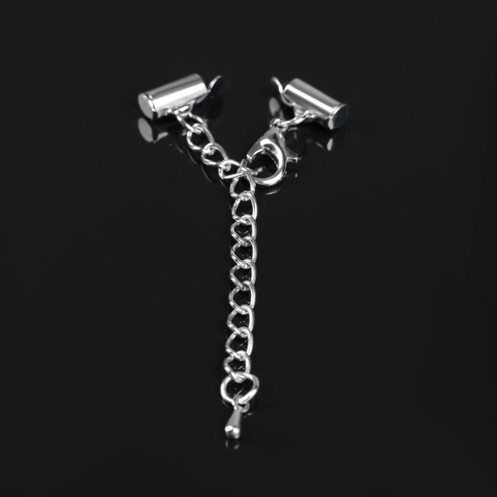 Концевик для браслета из бисера (пара) Queen fair, 10 мм, металл, с цепочкой удлинителем, цвет серебро