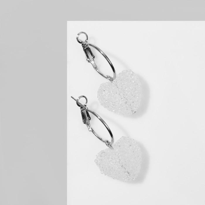 Серьги пластик «Сахар» сердце, цвет белый в серебре