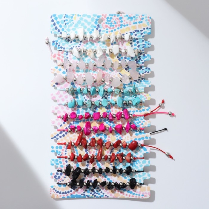 Браслеты-обереги «Нить желаний» набор 12 шт., камни, цветные