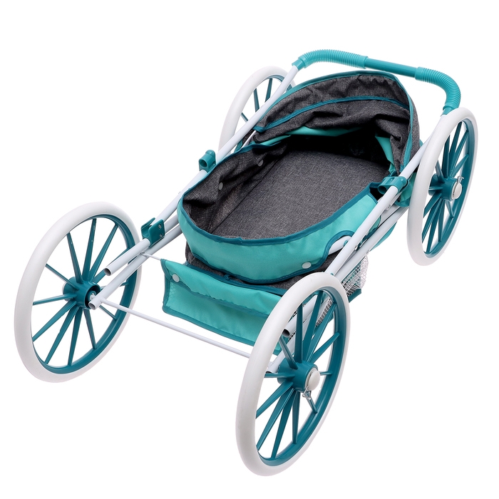 - Металлический каркас обеспечивает надежность конструкции, а мягкие ткани и материал колес EVA гарантируют комфорт для куклы.