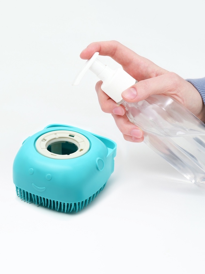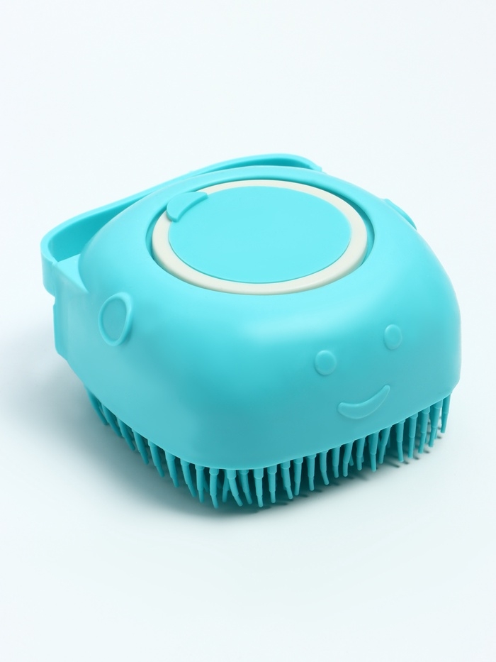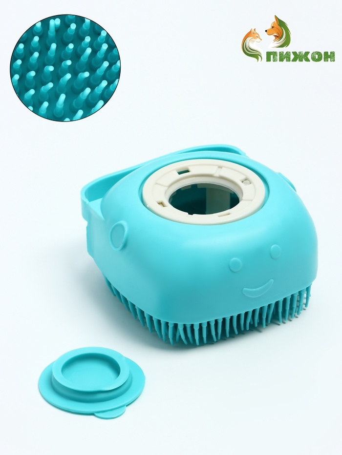 Щётка для мытья и массажа животных, с емкостью для шампуня, голубая
