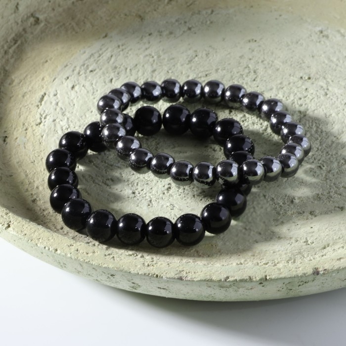 Набор браслетов 2 шт. шар №8 «Гематит» и шар №10 «Агат»