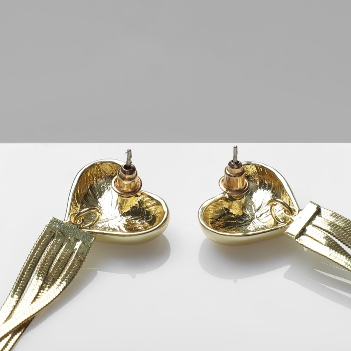 Серьги висячие «Стерео» сердце, цвет золото
