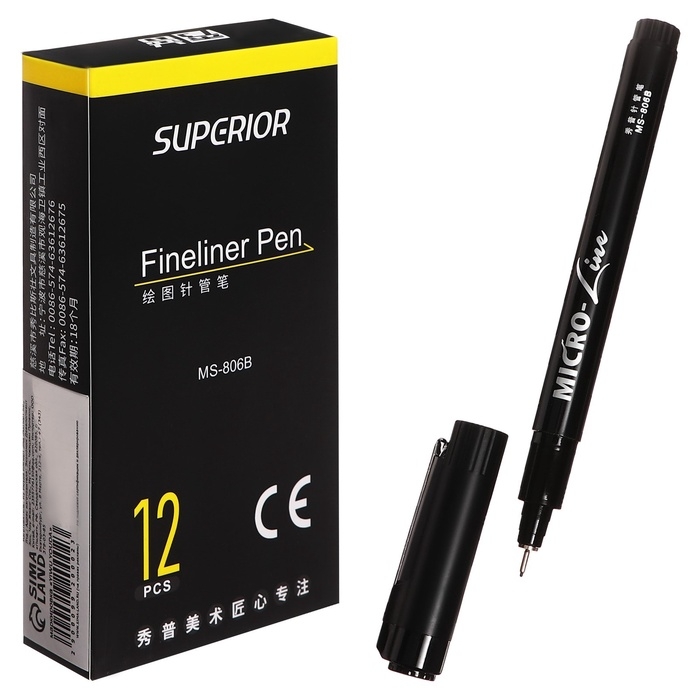Маркер профессиональный линер черный, тонкая линия, 0.3мм