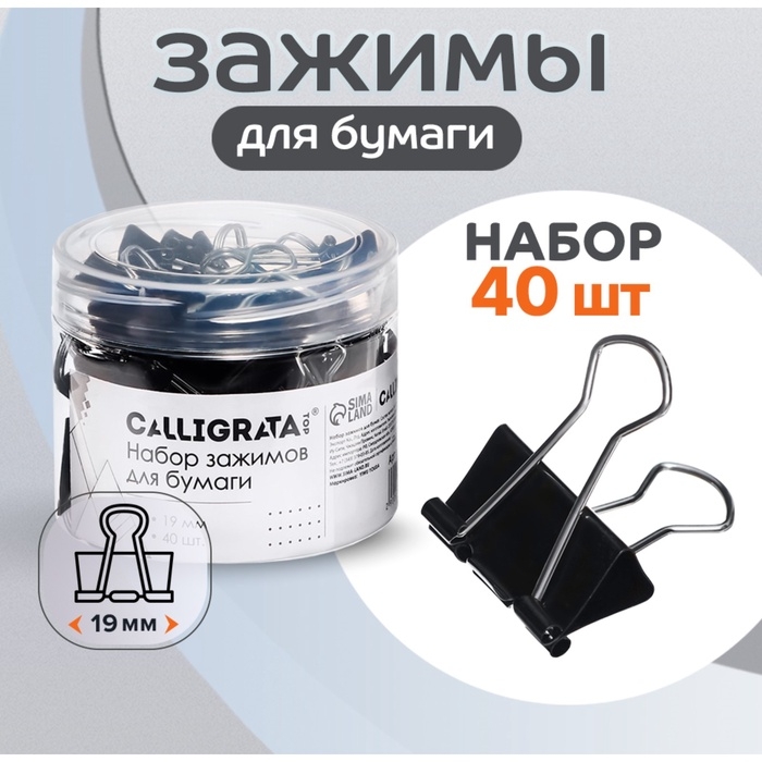 Металлические зажимы для бумаг Calligrata используются для скрепления документов, фотографий без использования степлеров и скрепок, для временной фиксации листов, не повреждая их и надежно удерживая стопку бумаг. Канцелярские зажимы 19 мм из металла. Они являются необходимой офисной принадлежностью, используются в школах и дома