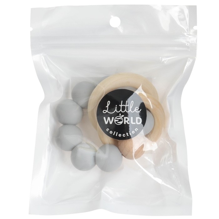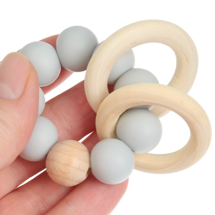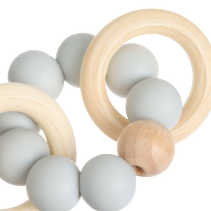 Прорезыватель силиконовый M&B с деревянным кольцом, серый