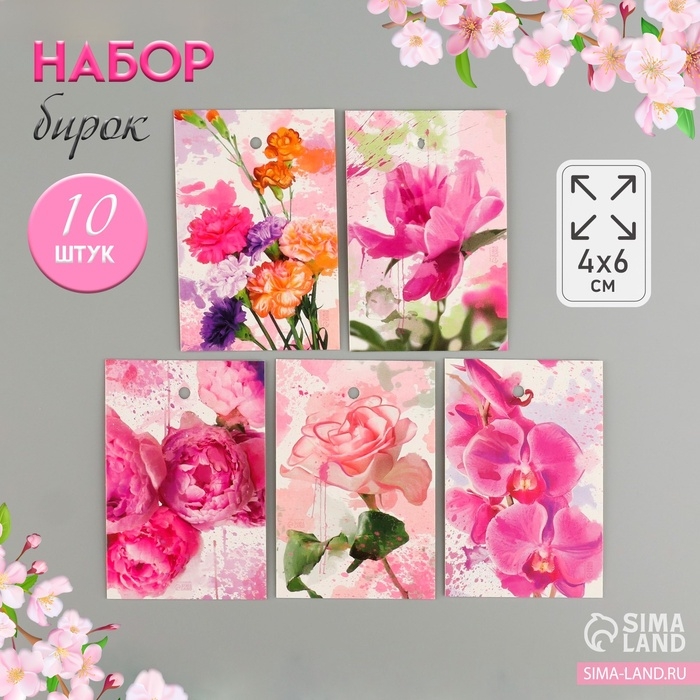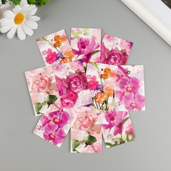 Бирка картон "Акварельные цветы" набор 10 шт (5 видов) 4х6 см