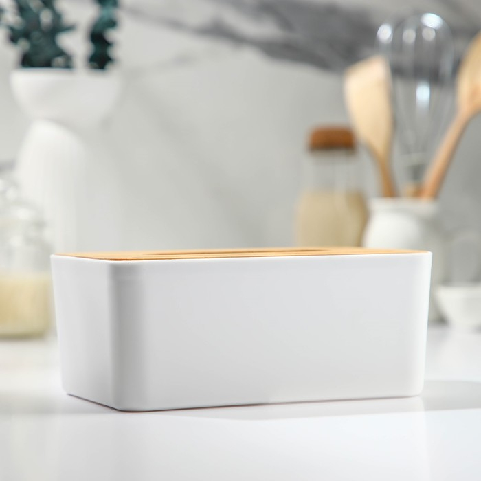 Салфетница керамическая на бамбуковой подставке BellaTenero, 14×7×10 см, цвет белый