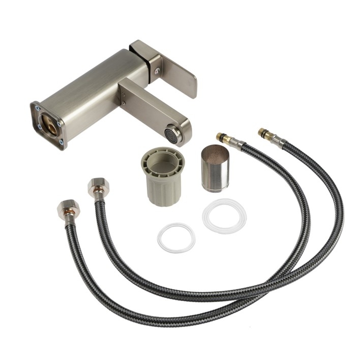 Смеситель для раковины ZEIN ZS 20102, картридж керамика 35 мм, нержавеющая сталь, сатин