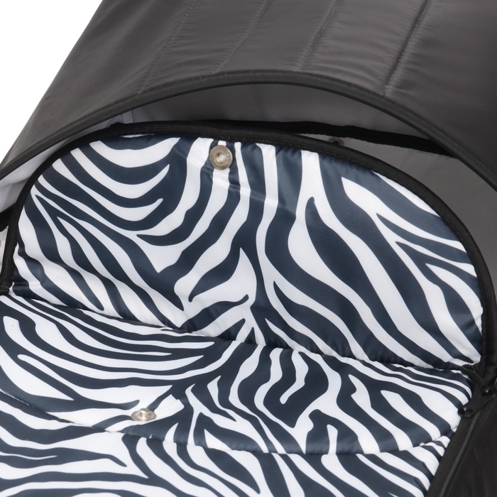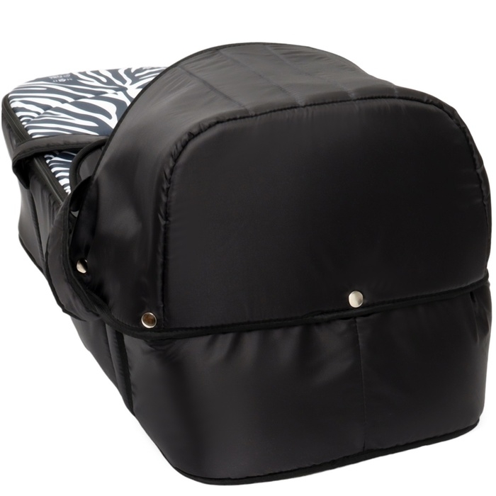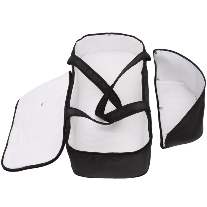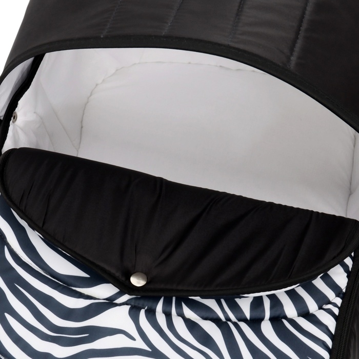 Люлька имеет съемный козырек/капюшон на кнопках, который помогает защитить вашего малыша от дождя, ветра и солнца. Так же люлька дополнительно оснащена ветрозащитным отворотом. Накидка на двух молниях поможет легко и удобно поместить малыша в переноску либо вынуть его из неё. Для большего комфорта и удобства в дно переноски вставлена жесткая вставка из ДВП. Мягкие ручки позволят рукам не испытывать дискомфорт при транспортировке.