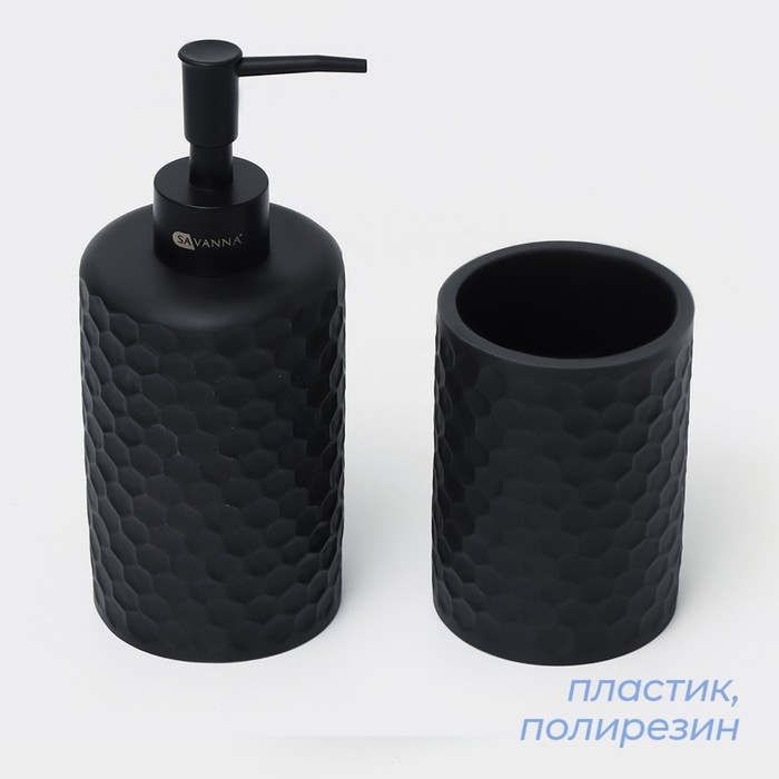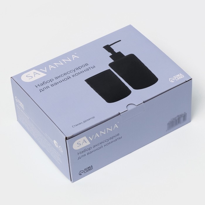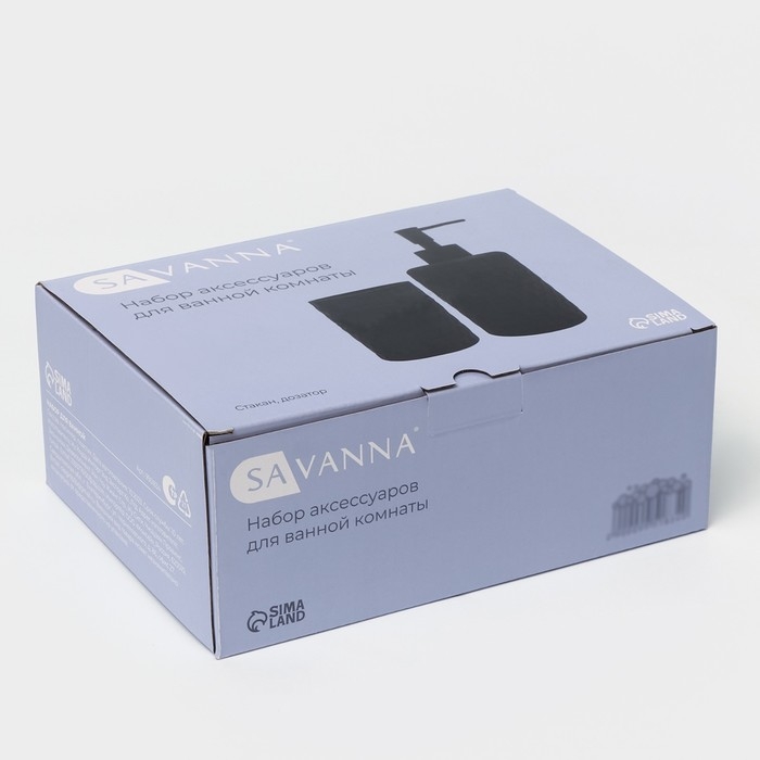 Набор аксессуаров для ванной комнаты SAVANNA, 2 предмета: дозатор, стакан, цвет чёрный