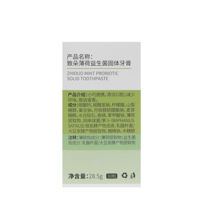 Органическая зубная паста в таблетках с мятой и пробиотиками, набор 30 шт